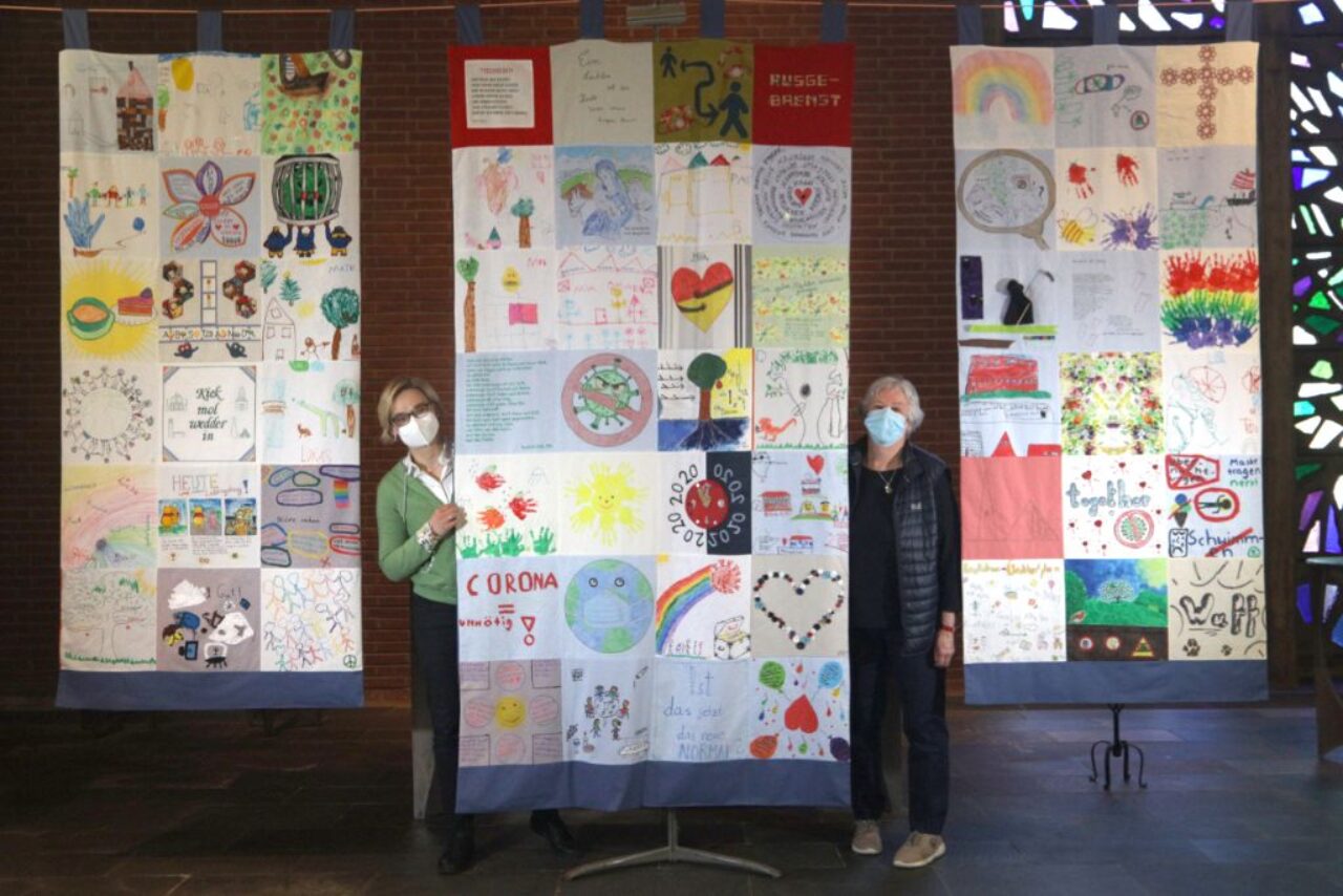 Gestickt, gemalt, gedruckt oder genäht – mit ganz verschiedenen Techniken näherten sich 63 Menschen jeden Alters der Aufgabe, ein Corona-Tuch