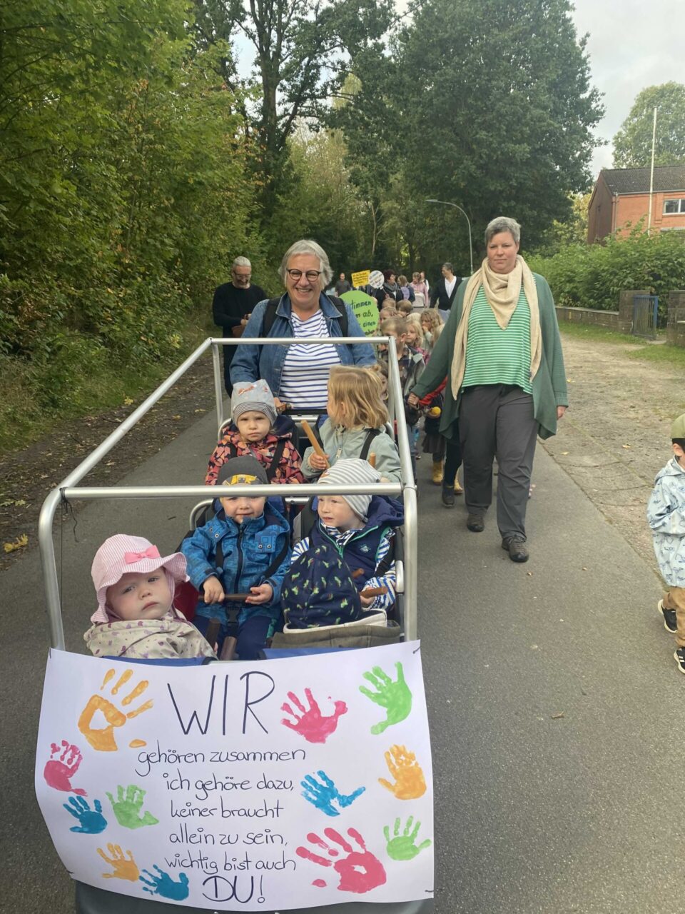 Einige Plakate mussten zu zweit getragen werden – so viele Wünsche hatten die Kinder der Evangelischen Kindertagesstätte in Drelsdorf aufgeschrieben.