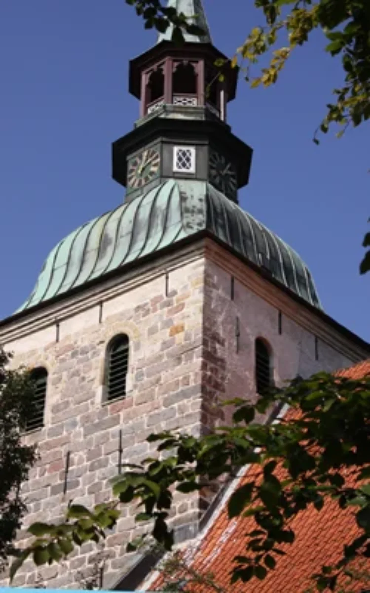 Der älteste erhaltene Kirchenbau aus der Gründungszeit der Stadt (17. Jhdt), nach Beschuss 1850 und im 20. Jhdt innen neu gestaltet. Als bedeutendstes Kunstwerk der Stadt befindet sich hier das 1675 von Jürgen Ovens erschaffene Altarbild. Der Hofmaler Friedrichs III. stiftete es der Kirchengemeinde wenige Jahre vor seinem Tod. Eine Ringerink-Kanzel um 1600 und ein Taufbecken aus dem 15. Jhdt, die aus untergegangenen Kirchen der Insel Strand stammen, zieren die Kirche darüber hinaus.