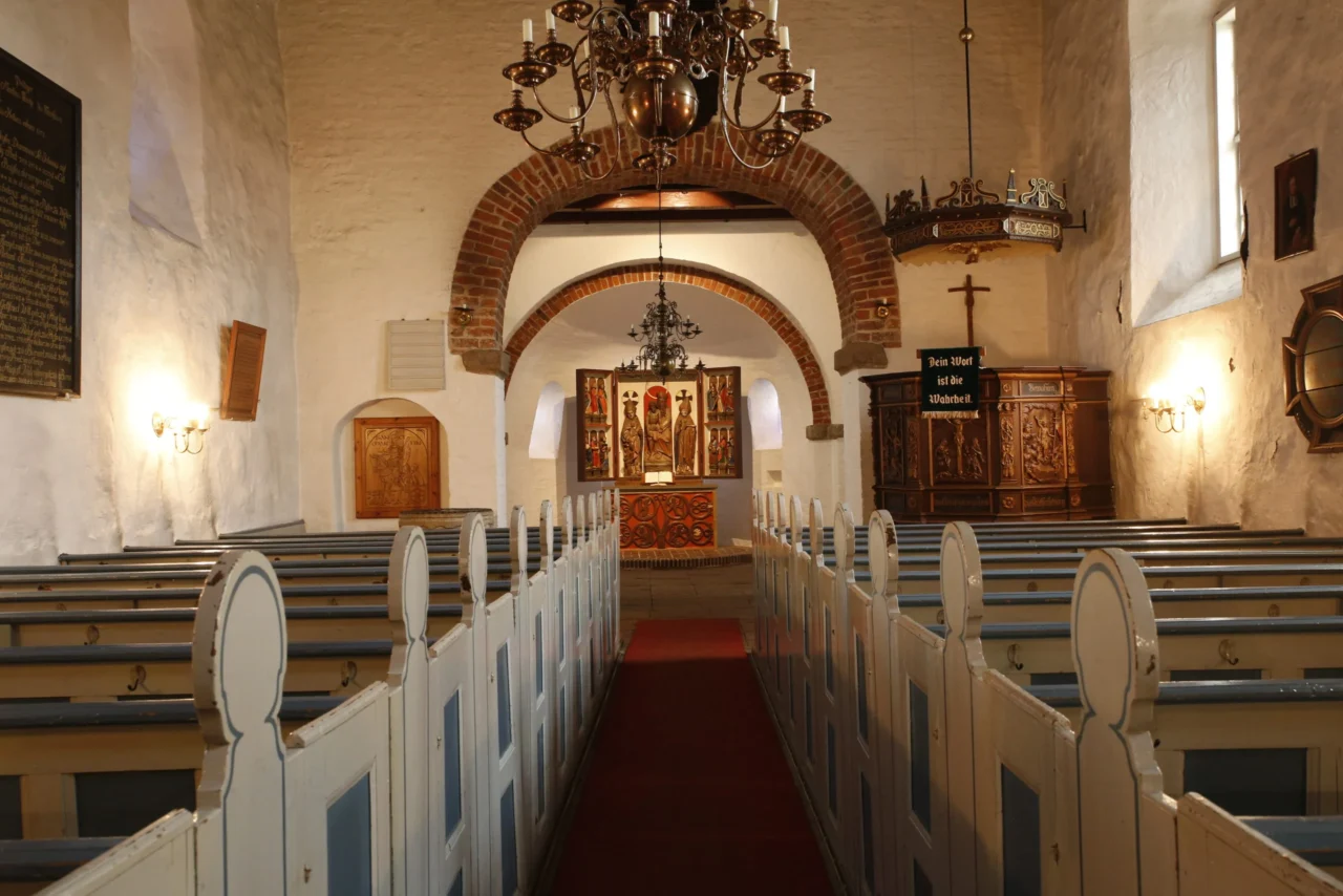 Webseite www.kirche-westerland.de Die „Dorfkirche“ von 1637 steht im Herzen Alt-Westerlands, umgeben vom liebevoll gepflegten Alten Friedhof. Besonders beeindruckt der vor